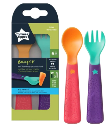 ¡Haz que la hora de comer sea más fácil y segura con el Tenedor y Cuchara Autoalimentables Easigrip de Tommee Tippee! Perfectos para ayudar a tu bebé a dar sus primeros pasos en la autoalimentación.